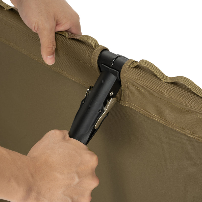 The Tactical Cot Convertible offers off-ground comfort with a strong, supportive frame and modular leg system for elevated or ground-level use. Side MOLLE webbing adds field utility -ready for camp, base, or backcountry.