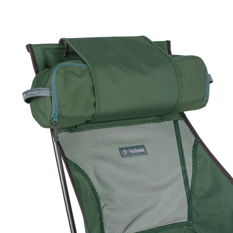 • Convenient features. Two pockets on one side. Reinforced corners hold and support. Headrest flap keeps a puffy jacket, soft pillow, even your chair case in place for more head support.